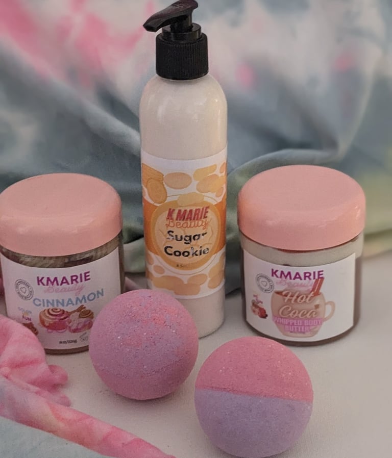 At KMarie Beauty, we create handmade moisturizing lip gloss and luxurious body and bath products designed to enhance your beauty experience with vibrant colors.
